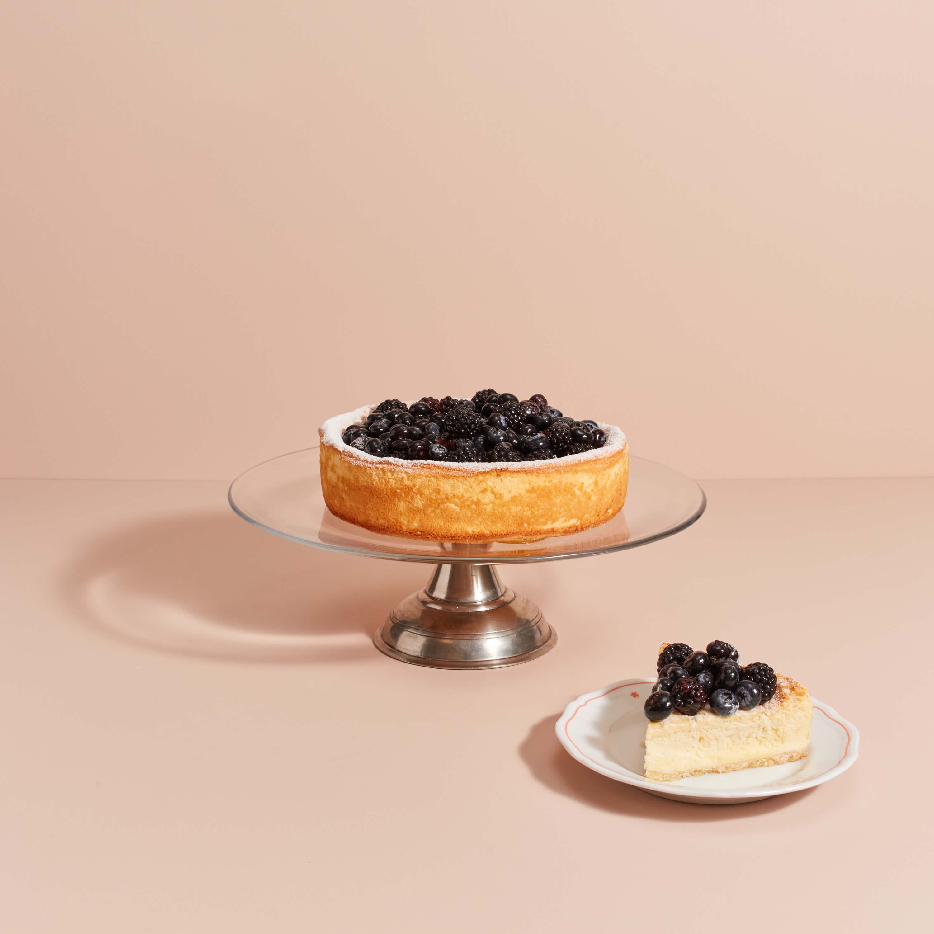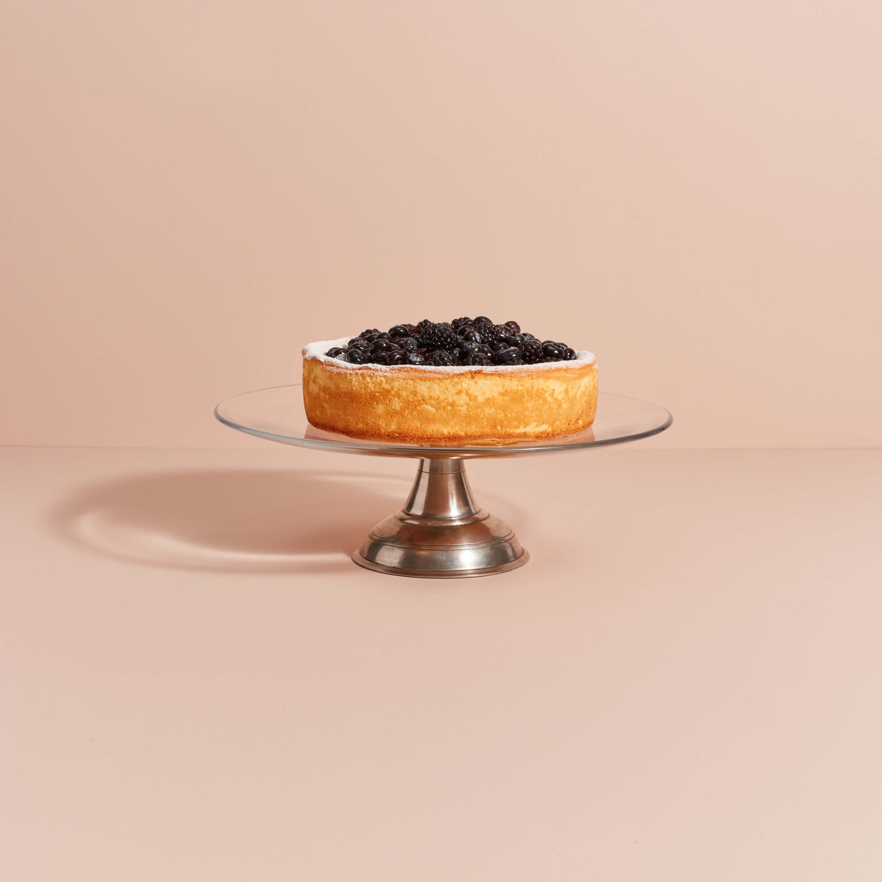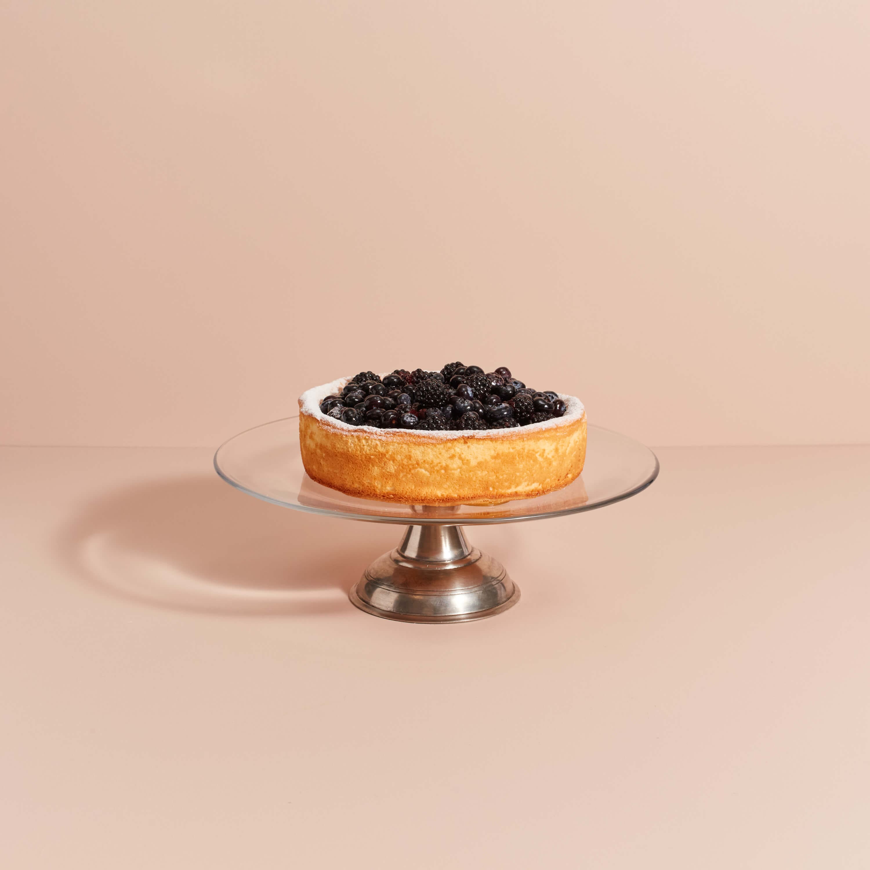 Made with fresh mascarpone and Ricotta cheese, baked on a sugar dough, and finished with blackberries and blueberries.