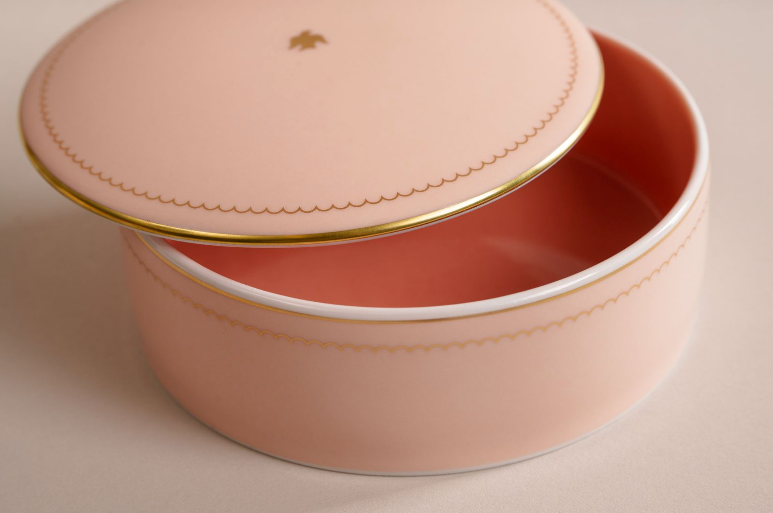 Nata dalla prestigiosa collaborazione con la storica manifattura italiana Ginori 1735, questa scatola portagioie in porcellana è un capolavoro in edizione limitata.Interamente dipinta a mano, impreziosita da finiture in oro satinato e decorata con la colombina simbolo di Sant Ambroeus, incarna l’eccellenza e la raffinatezza del saper fare italiano.