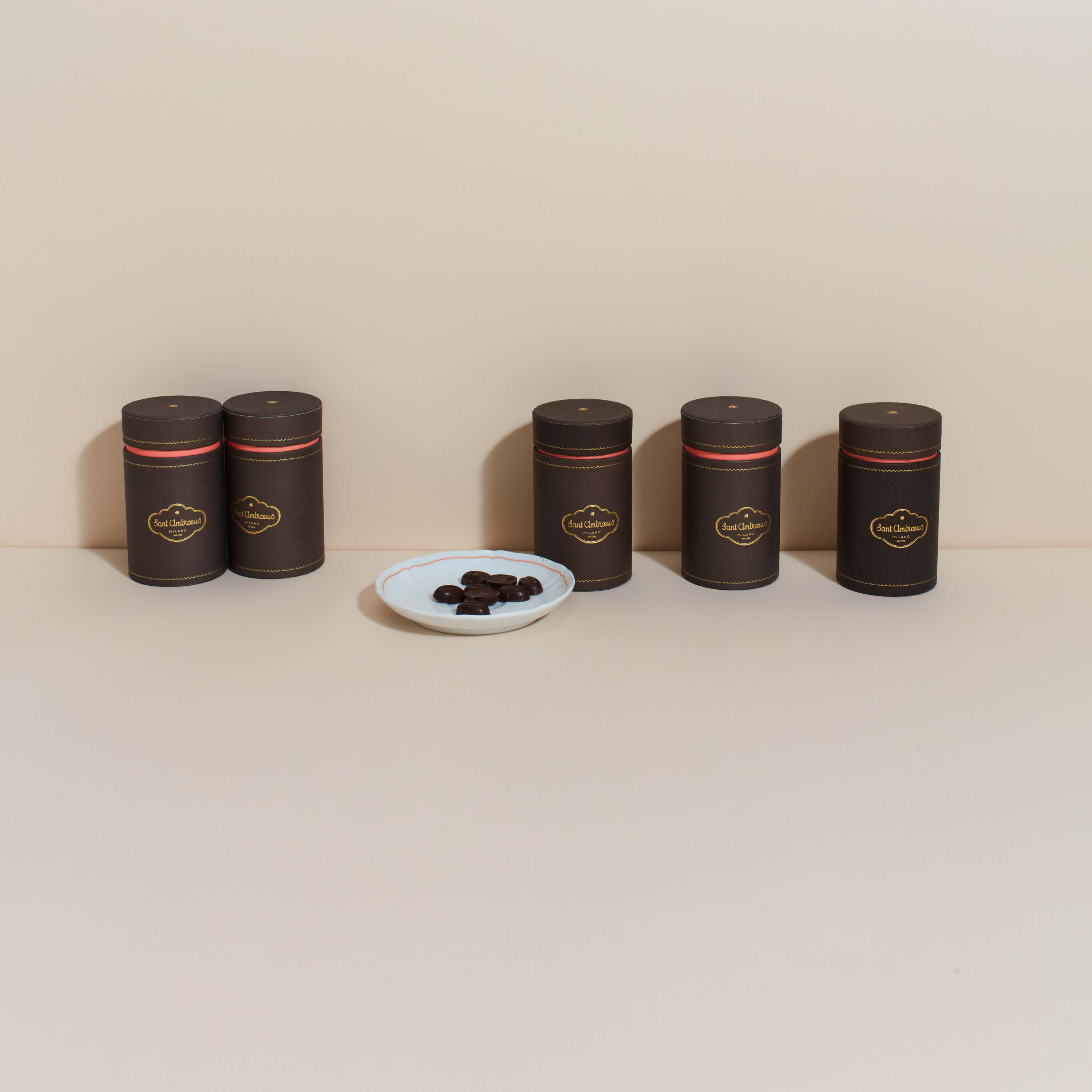 A perfect balance of deep espresso flavor and rich, high quality chocolate, our Chocolate Covered Espresso Beans are a sophisticated delight. They arrive tied in a bag tucked within a handsome branded canister.