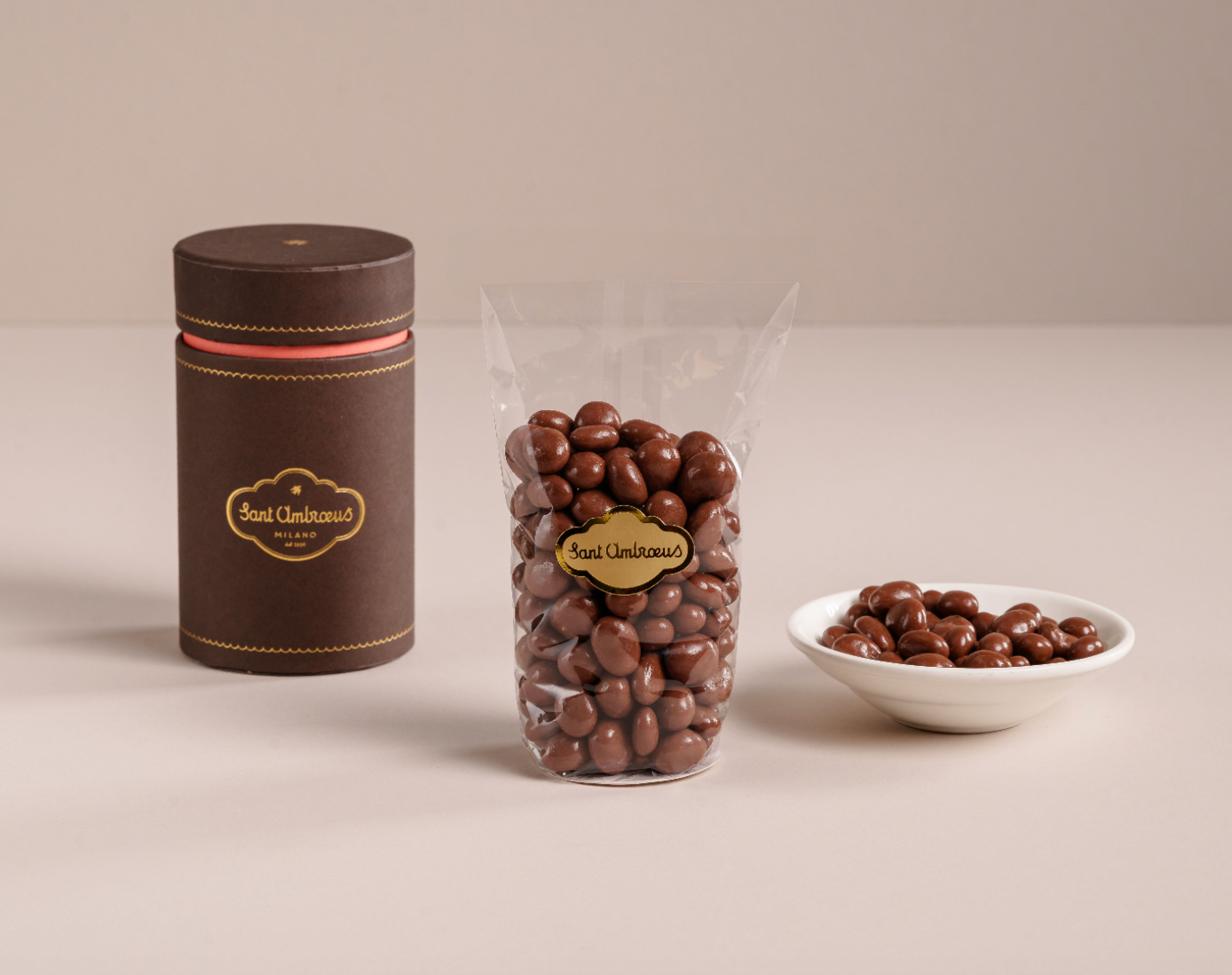 Plump raisins enrobed in creamy milk chocolate create an elegant confection that balances natural fruit sweetness with refined cocoa notes. They arrive tied in a bag tucked within a handsome branded canister.